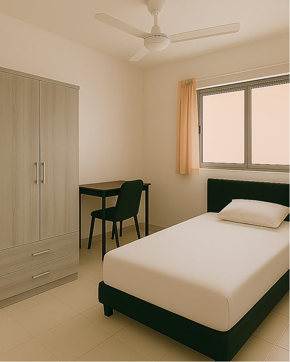 Tempat tinggal selesa, mudah dan sedia untuk didiami. Isi butiran anda di bawah dan kami akan hubungi anda dengan pilihan bilik yang sesuai.